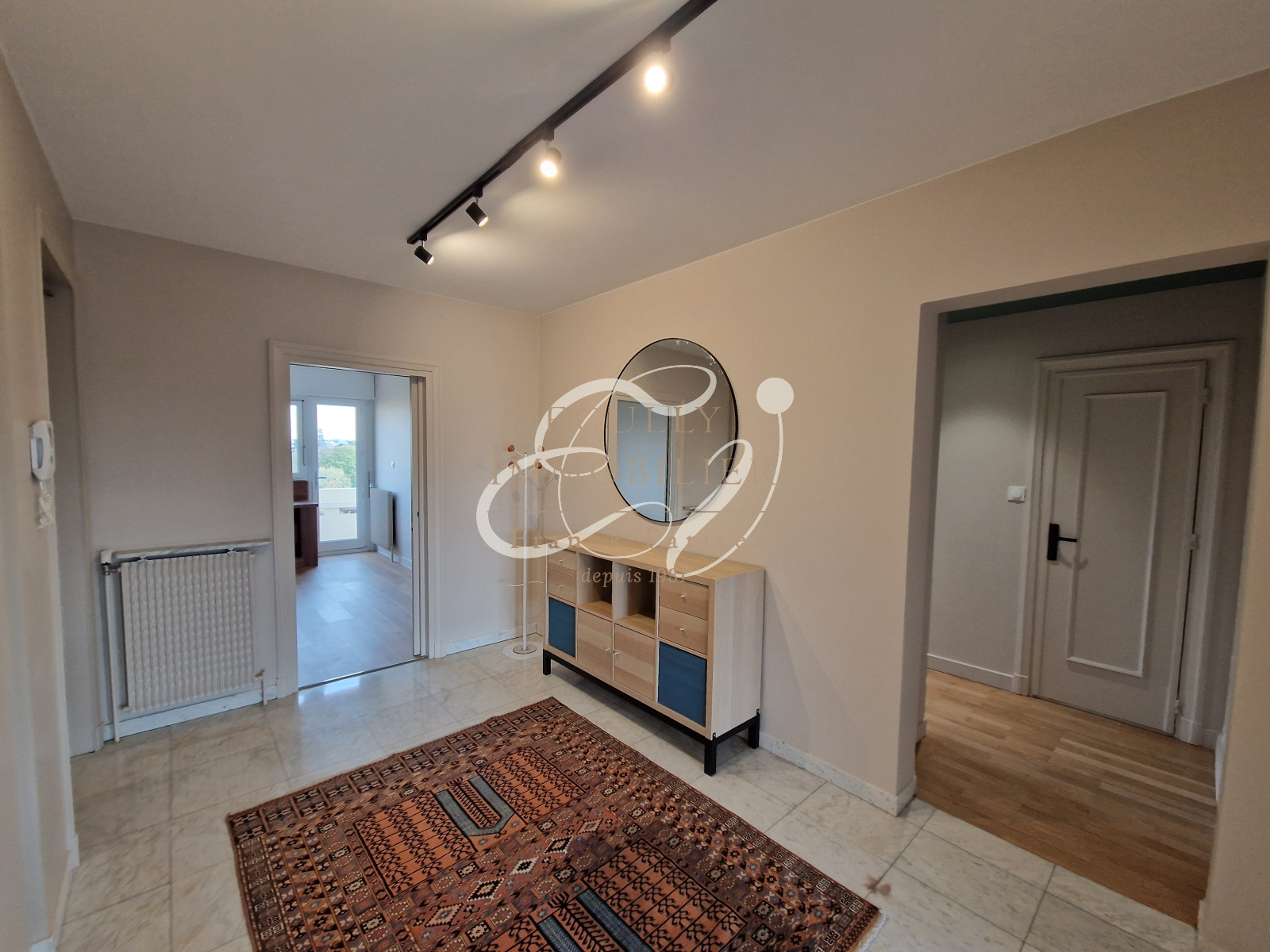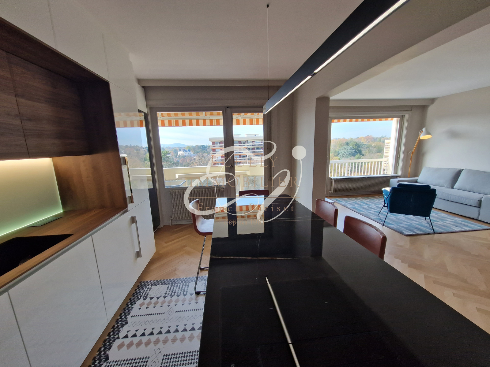 Écully (69130)Location Ecully 69130 Situé dans le centre du village, dans une copropriété de standing PITANCE avec parc, piscine, tennis. Très bel appartement traversant entièrement rénové en étage élevé aevc une vue dégagée. Appartement de standing composé d'une entrée en pierre marbrière avec placards, un séjour en parquet chêne avec une cuisine américiane équipée et meublée ouvrant sur une terrasse.Dans la partie nuit, deux chambres et un bureau ouvrant sur un balcon filant, des rangements, une salle de douche avec meuble vasque, un wc séparé. Une cave et un garage simple en sous-sol complètent le bien. A 300 m des commerces, transports, écoles et collège.