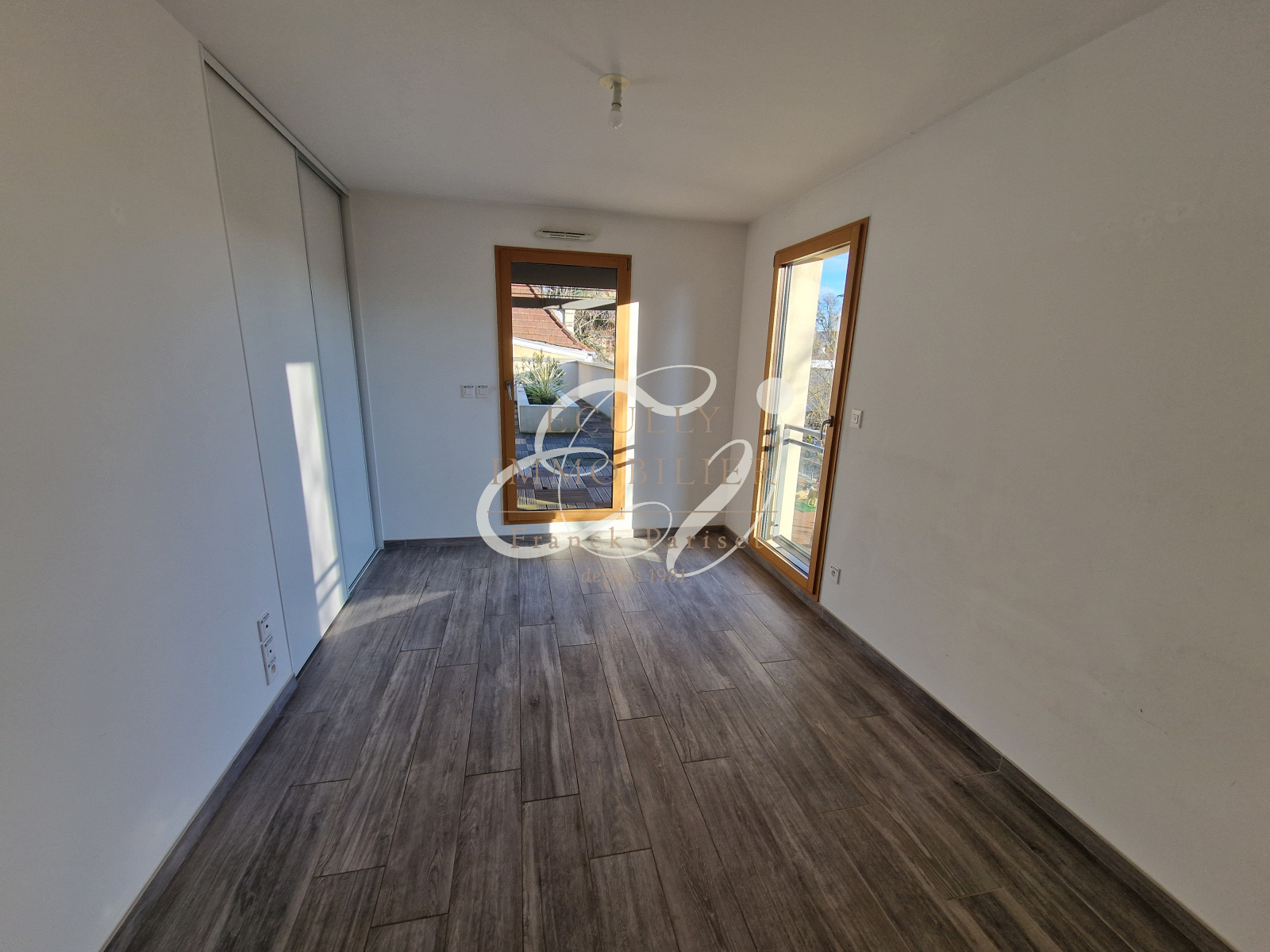 Écully (69130)Location Ecully 69130. Appartement T5 de 100 m² environ au 2ème étage d'une petite résidence récente (2015) située en plein centre d'Ecully (sur la place centrale). Appartement se composant, d'une entrée avec rangements, un séjour ouvrant sur un balcon, une cuisine ouverte meublée et semi-équipée (four, plaque et hotte), 4 chambres dont deux avec rangements et une avec salle d'eau et WC, une salle de bains, une buanderie et un WC séparé. Un garage et une terrasse de 80 m² environ complètent le bien. Appartement proche des commerces et des transports.