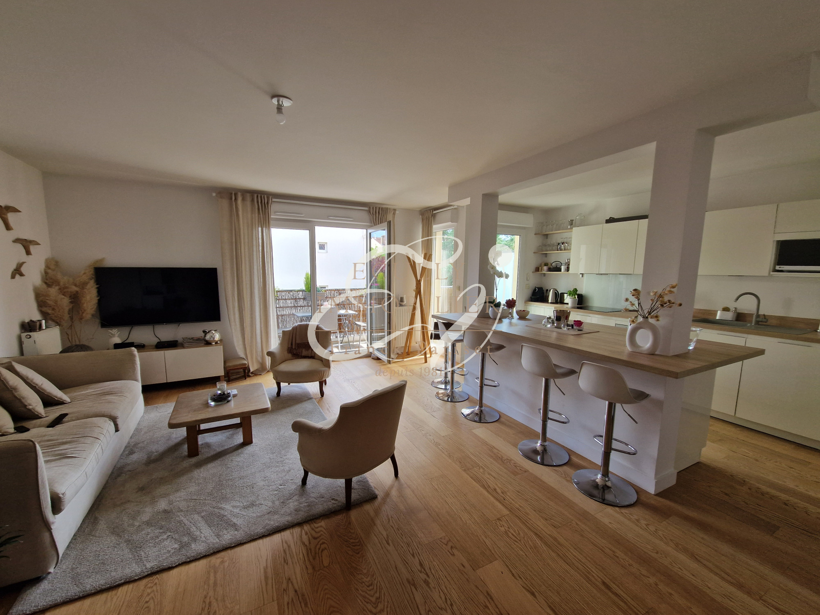 Tassin-la-Demi-Lune (69160)Location TASSIN LA DEMI-LUNE 69160 Appartement meublé en duplex de 92 m² en excellent état, au dernier étage d'un immeuble. Très beau duplex composé au rez-de-chaussée, d'une entrée avec placard, un grand séjour ouvrant sur un balcon, une cuisine ouverte équipée et meublée (plaque, hotte, four, frigo, lave-vaiselle) avec un îlot central, un wc séparé. A l'étage, une suite parentale avec salle d'eau et dressing, 2 chambres avec placards dont une avec sa salle d'eau, un WC et une buanderie. Un garage et une cave complètent le bien. Idéalement placé situé au calme sur cour, proche de la gare, des transports 55/72/86/98 et des commerces.