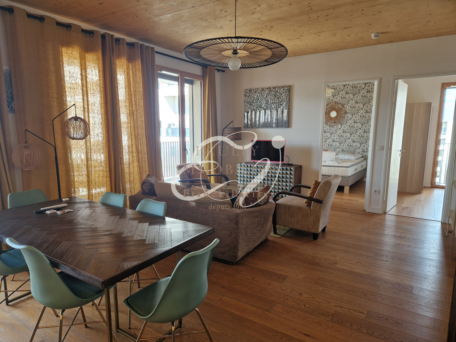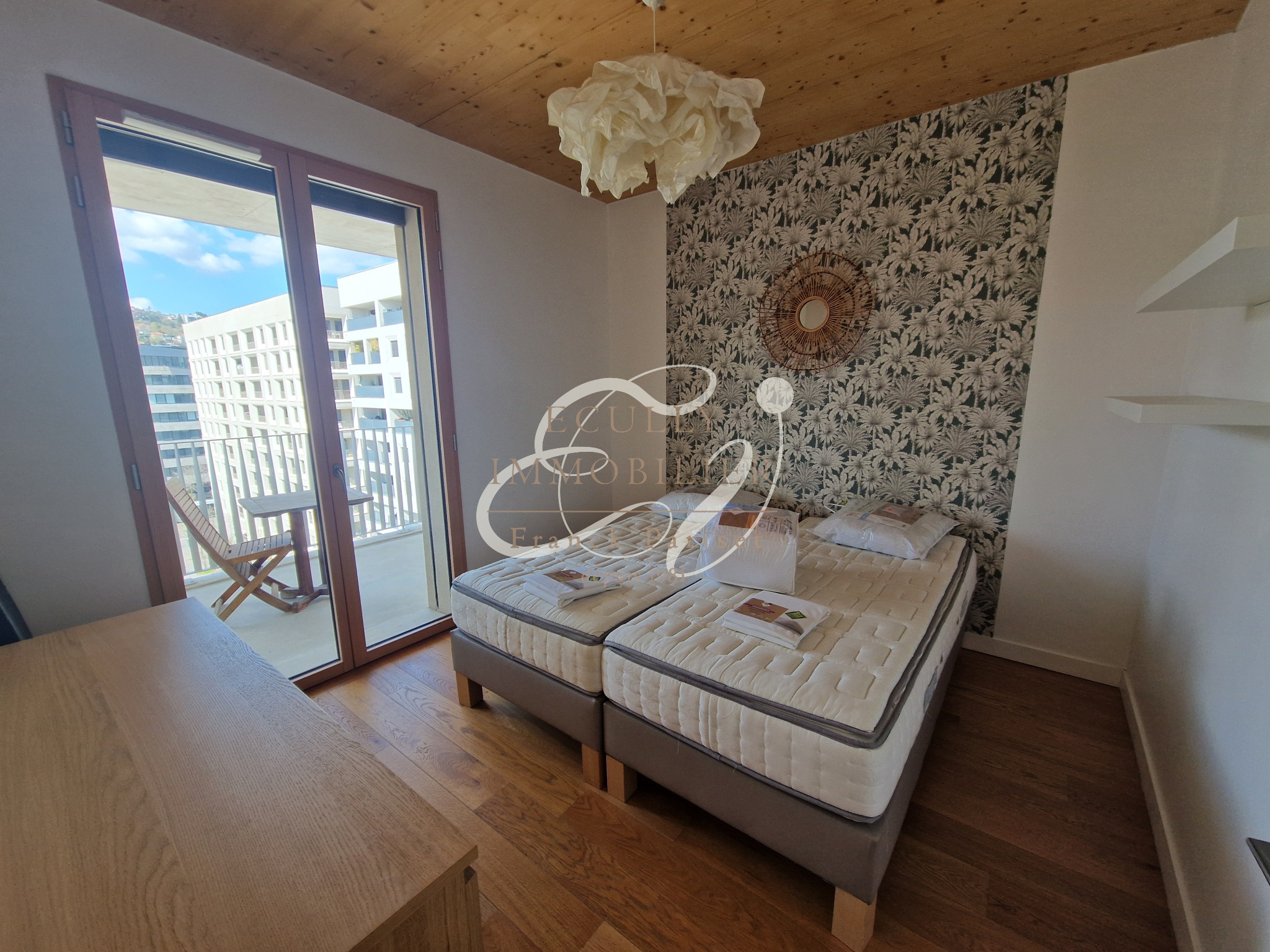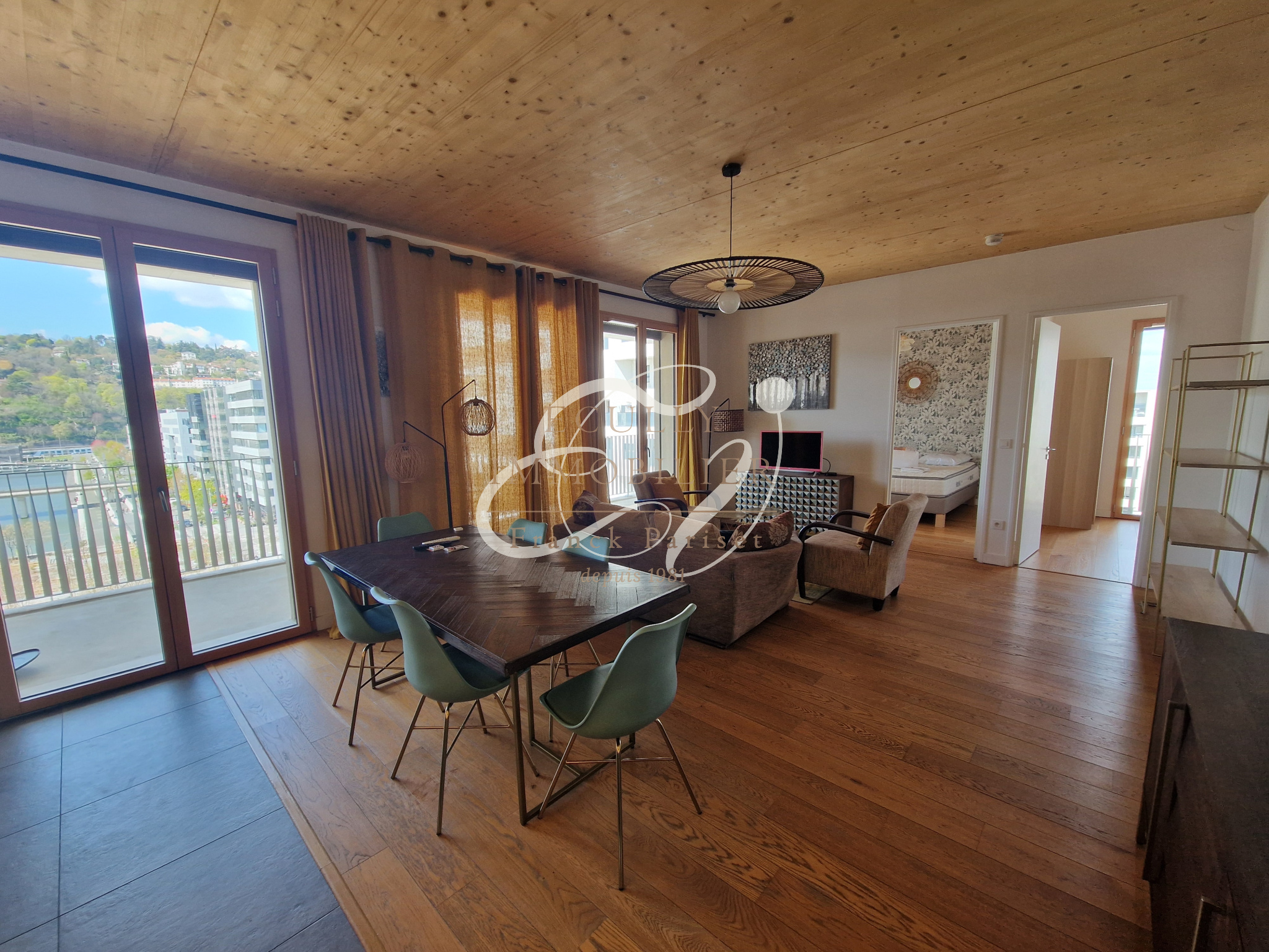 Lyon (69002)Location LYON 69002. Appartement T3 meublé de 67,51 m² en très bon état, dans une résidence résente situé rue Charles Baudelaire au cœur de Confluence. Se composant d'une entrée avec rangements, un séjour ouvrant sur un grand balcon de 22 m², une cuisine ouverte meublée et équipée (four, plaques, hotte, frigo, lave-vaisselle), deux chambres, une salle de bains avec meuble vasque et sèche-serviette et un WC séparé. Une cave et une place de sationnement complètent ce bien. La résidence met à disposition un local vélo ainsi que des espaces partagés : cour jardinée avec potagers et composteurs, espace multi-fonctions (salle de réunion, de fêtes, atelier…). Proche des transports, centre commercial, marché, crèche, école, université, salle de sport, stade, parc, gare à 5mn, berge des fleuves toutes proches.