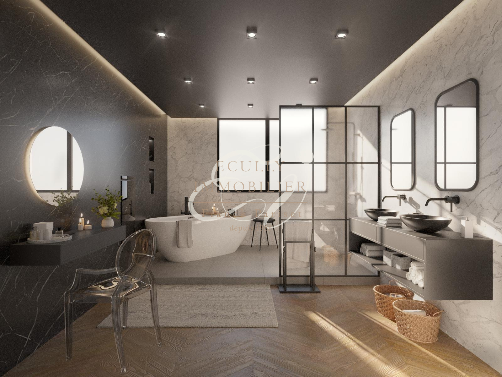 placo, menuiseries, carrelage, climatisation gainable, plancher chauffant, cuisine, salles de bains, aménagements extérieurs, piscine, terrasse, garde-corps, locaux techniques, etc.