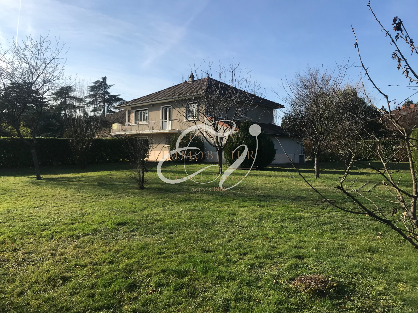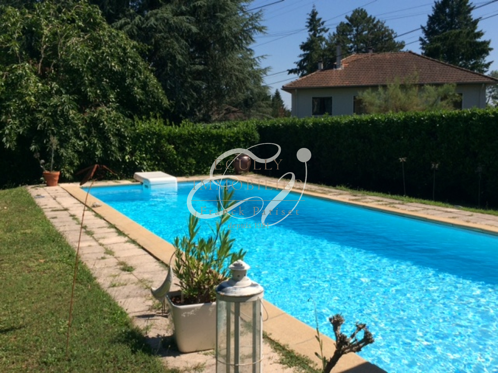 Écully (69130)EXCLUSIVITE VENTE à Ecully 69130 , une maison de 168 m² sur grand terrain de 1624m² plat avec piscine. Au rez de chaussée, maison composée de 2 chambres, un bureau, une salle de douche, 2 WC et une buanderie. A l'étage: un double séjour ouvrant sur balcon et terrasse, une cuisine indépendante (meublée, hotte et plaques), 2 chambres, une salle de bains avec double vasque, nombreux rangements. Un grand garage. Electricité, salle de bain et cuisine refaits à neuf. Environnement très clame. Quartier recherché. Proche transports à pieds (3 et 55, transports scolaires). Double vitrage et isolation de la toiture refait. Possibilité d'extension.