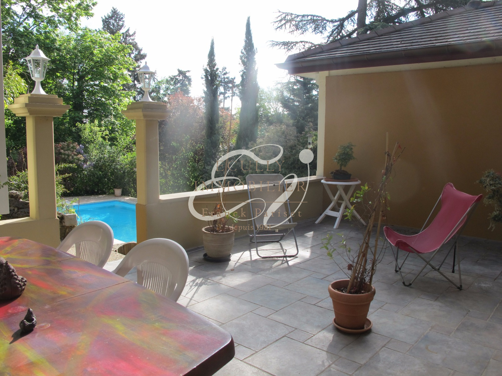 Écully (69130)Vente Ecully 69130 Maison de 1910 beaucoup de charme en état exceptionnel. Belle réception lunimeuse, cuisine ouvrant sur patio et terrasse. 3 chambres dont une suite parentale. bureau. Dépendance avec studio aménagé. Garage double,Parc arboré et clos de 1742 m² sans aucun vis à vis proche des transports. Sous-sol et cave. Piscine traditionnelle au sel.