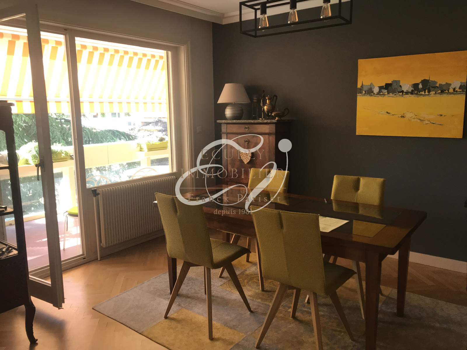 Écully (69130)VENTE à ECULLY 69130 au coeur du village. Un appartement 5 pièces dans une résidence de standing (PITANCE). Appartement se composant d'une entrée, une double réception ouvrant sur un grand balcon, une cuisine indépendante équipée, 3 chambres dont une suite parentale avec salle de bains et un dressing) , une salle d'eau, un wc, un dressing. En annexe : Une cave et un garage. Résidence dans un parc avec piscine et tennis. Commerces, transports et écoles à pieds. Environnement très calme.