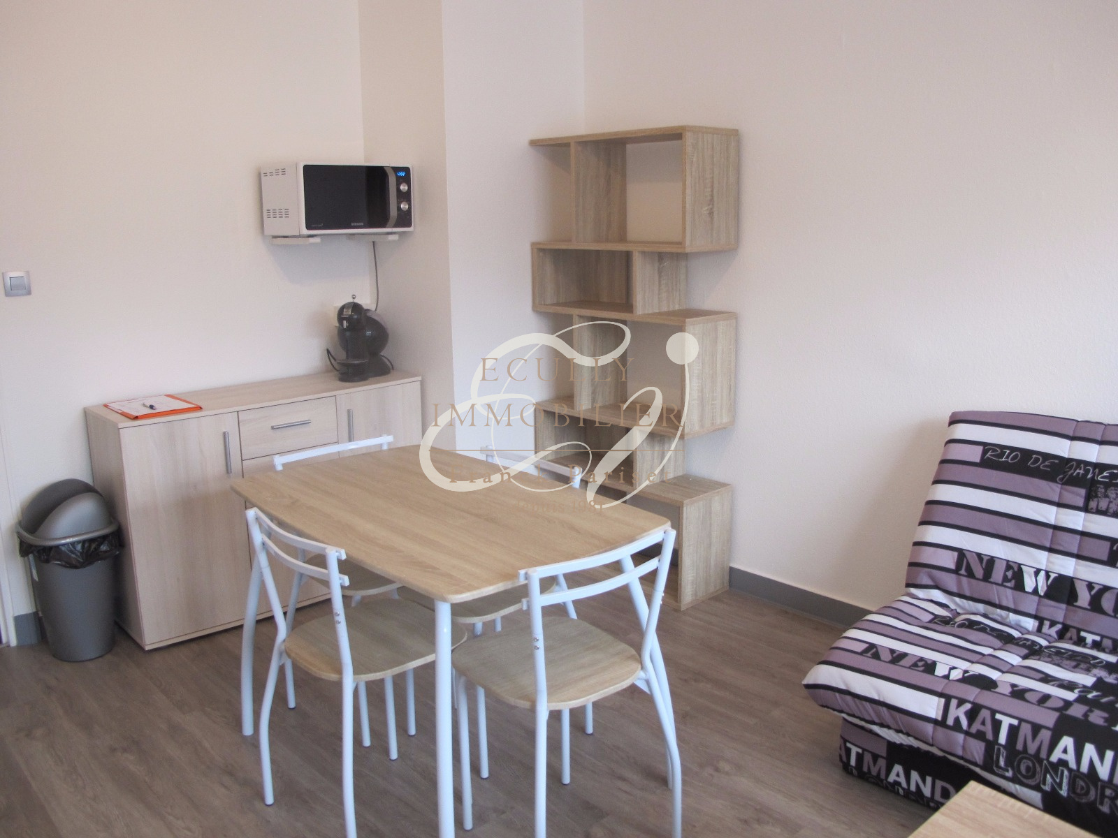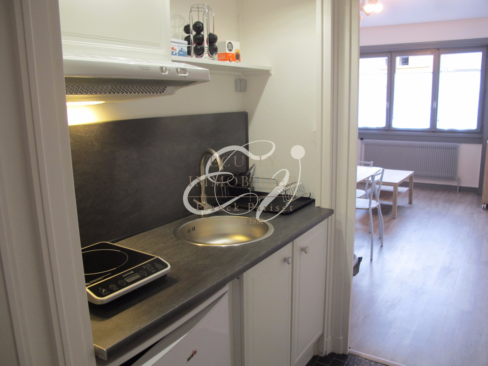 Écully (69130)VENTE 69130 Ecully Studio meublé de 26 m² refait à neuf composé d'une pièce principale avec kitchenette (frigo, micronde, plaque, cafetière) une salle de bains avec dressing et buanderie (machine à laver) dans résidence de standing avec parking extérieur, piscine, tennis, gardien et parc. Situé dans l'hypercentre, commerces, bus (55/19/5) à pieds, proche campus. charges (chauffage, eau froide et chaude, piscine, tennis, parc)