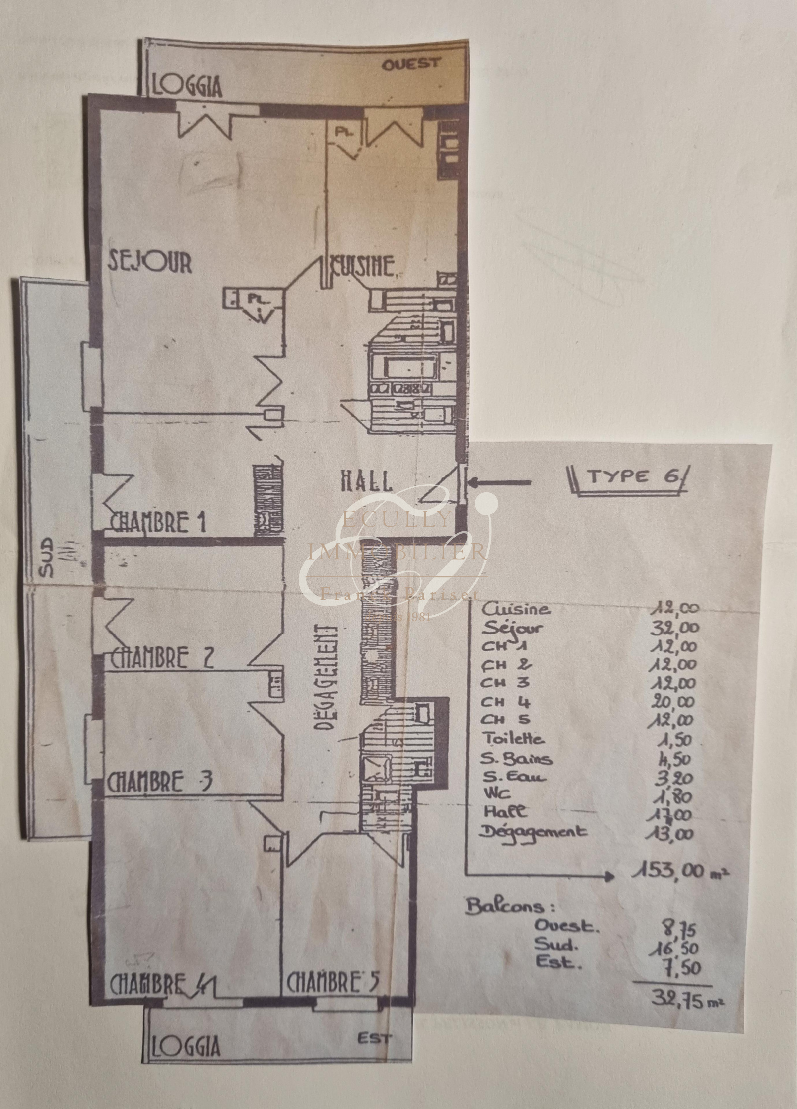 VENTE TASSIN LA DEMI LUNE 69160 - APPARTEMENT T6 153M² AVEC BALCONS EN DERNIER ETAGE A RENOVER SECTEUR RESIDE