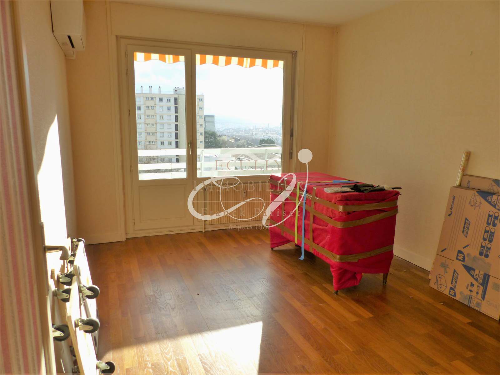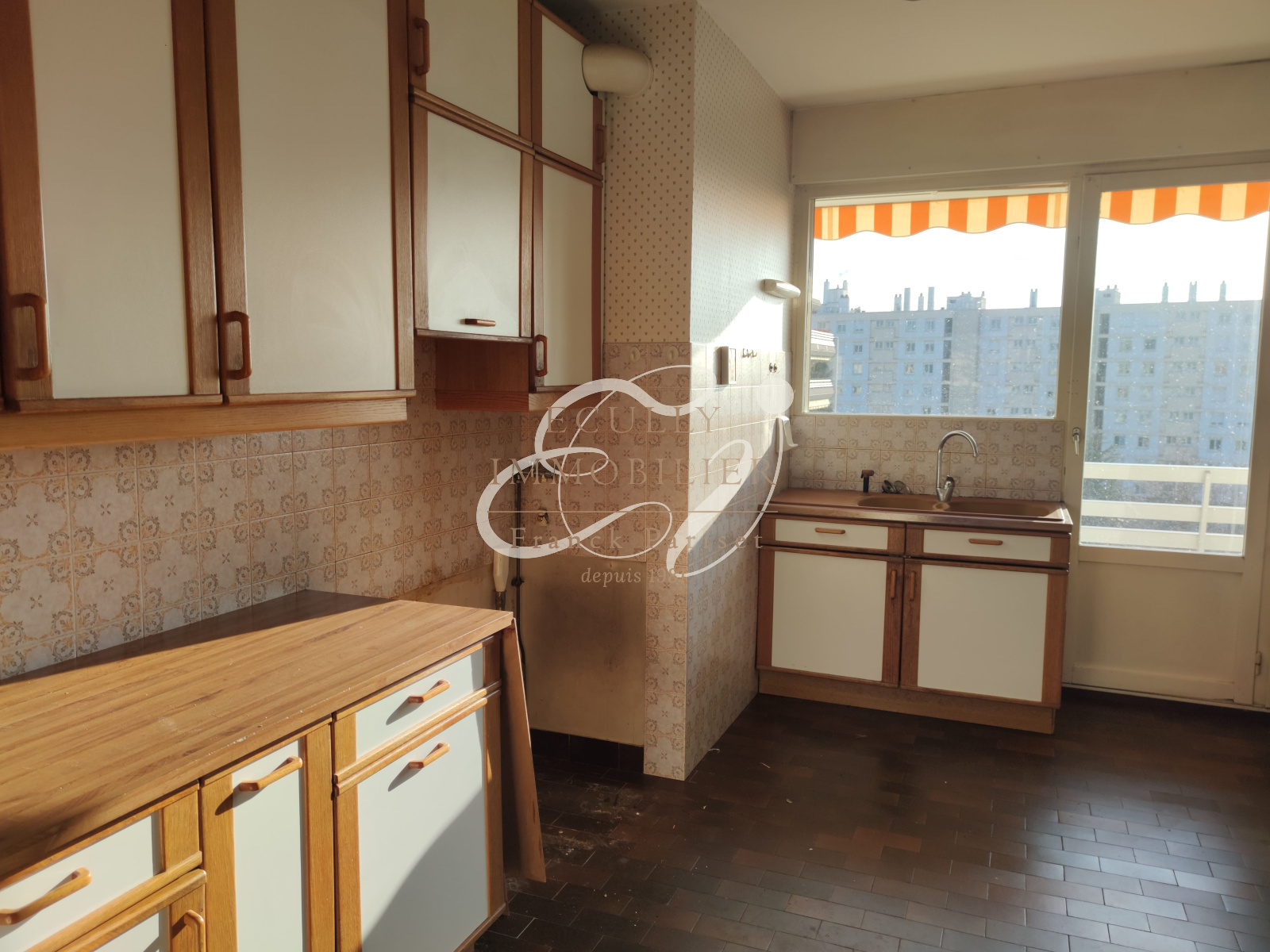 Caluire-et-Cuire (69300)VENTE CALUIRE 69300 - SOUS COMPROMIS - EXCLUSIVITE - A 2 pas du METRO Cuire, de la Voie Verte et à 10mn à pied de la Grande Rue de la Croix-Rousse, bel appartement de type T3 (actuellement configuré en T2) de 80m² dans résidence 70's sécurisée et gardiennée Pitance avec jardin arboré. Situé en étage élevé et traversant, très lumineux grâce à ses grandes baies vitrées dans chaque pièce, il se compose d'une vaste entrée avec placards, d'un double séjour, au calme, de plus de 35m² (ou 2ème chambre de 15m² à rétablir) avec à l'ouest un balcon de 14m² sans vis à vis et perspective jusqu'aux Mont d'Or, à l'est une cuisine et une chambre donnant chacune accès à un second balcon de 7m² offrant un panorama surprenant sur Lyon. Un dégagement agrémenté de placards distribue la salle d'eau et les toilettes, constituant un espace nuit à part entière. L'appartement bénéfiie de beaux volumes, les parquets sont en bon état, la climatisation a été installée dans le séjour, la chambre, la cuisine et des stores bannes solaires à l'extérieur. Une rénovation serait bienvenue pour mise au goût du jour (fenêtres, électricité, cuisine, salle d'eau, revêtements). Une cave complète ce bien. Un garage de 15m² de plain pied est proposé en sus (30 000€). Un bien RARE, à proximité de toutes les commodités (métro C vers Hôtel de Ville, bus vers Part-Dieu et Grange Blanche, commerces, écoles, établissements médicaux...) un vrai confort de vie ! Grands axes à proximité immédiate également. Votre contact : Marie Clemares, agent commercial, au 06 42 30 40 30.