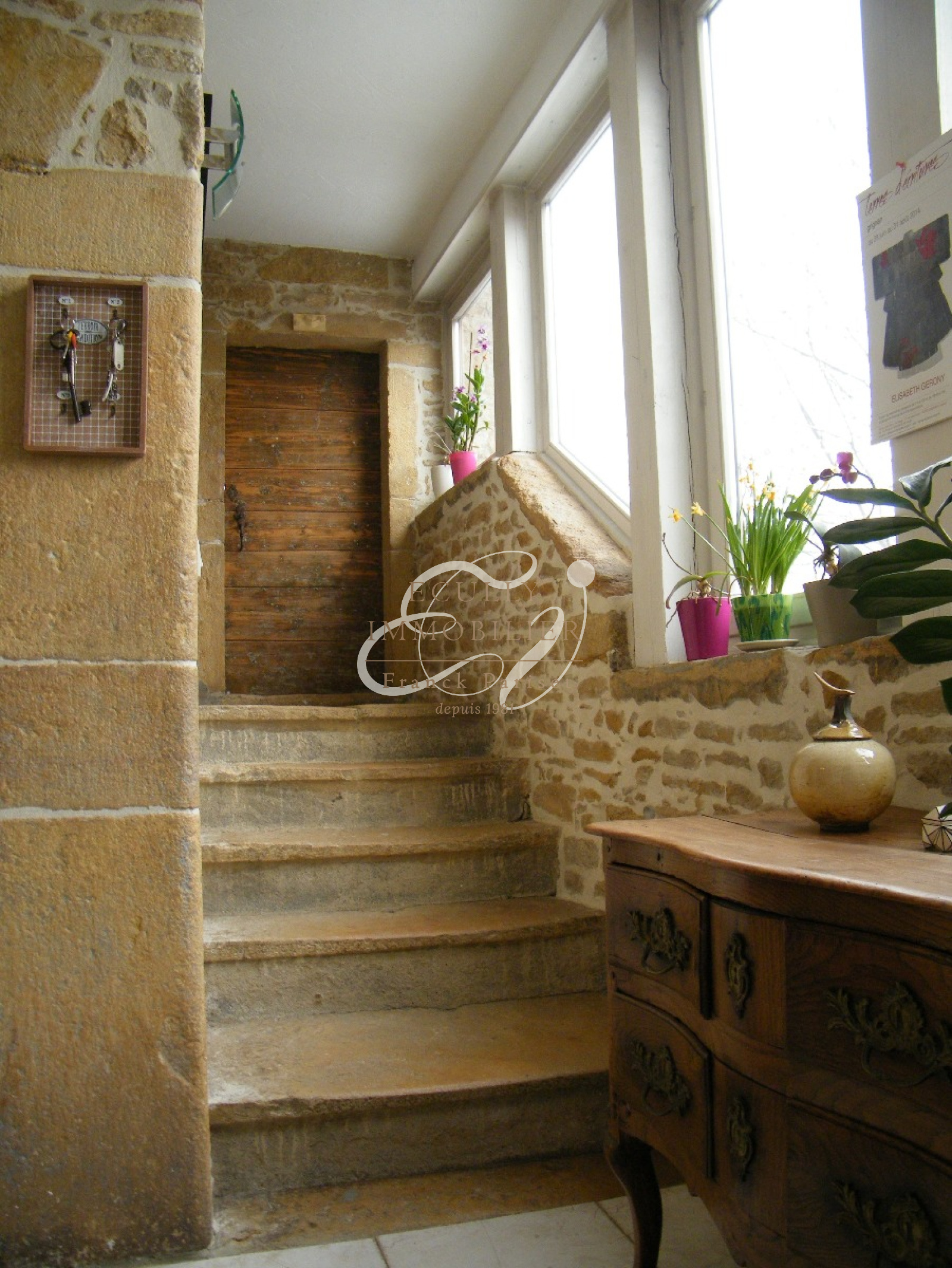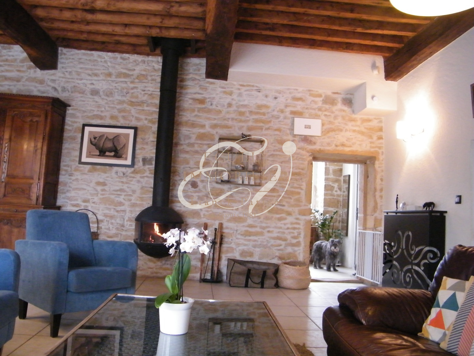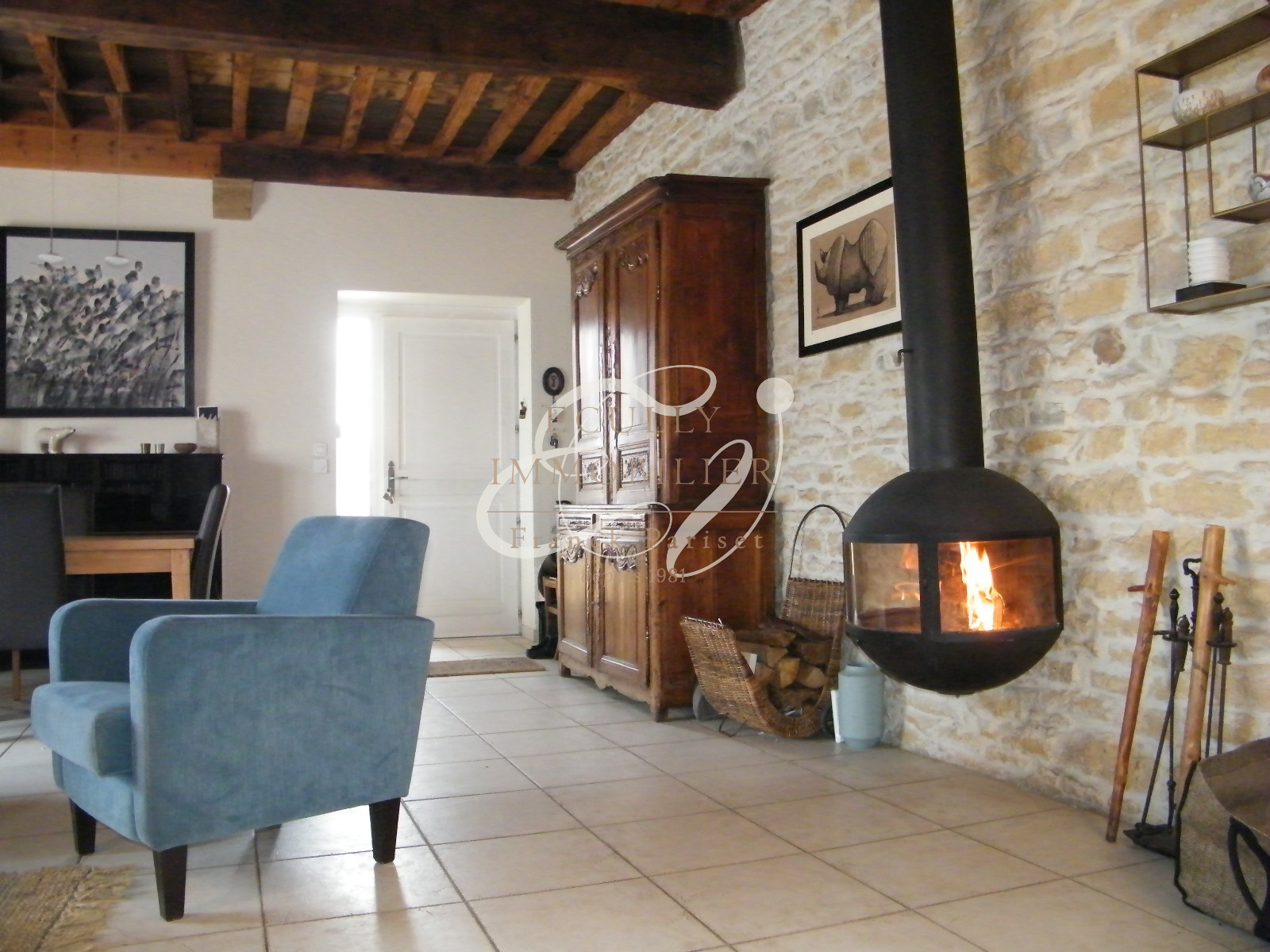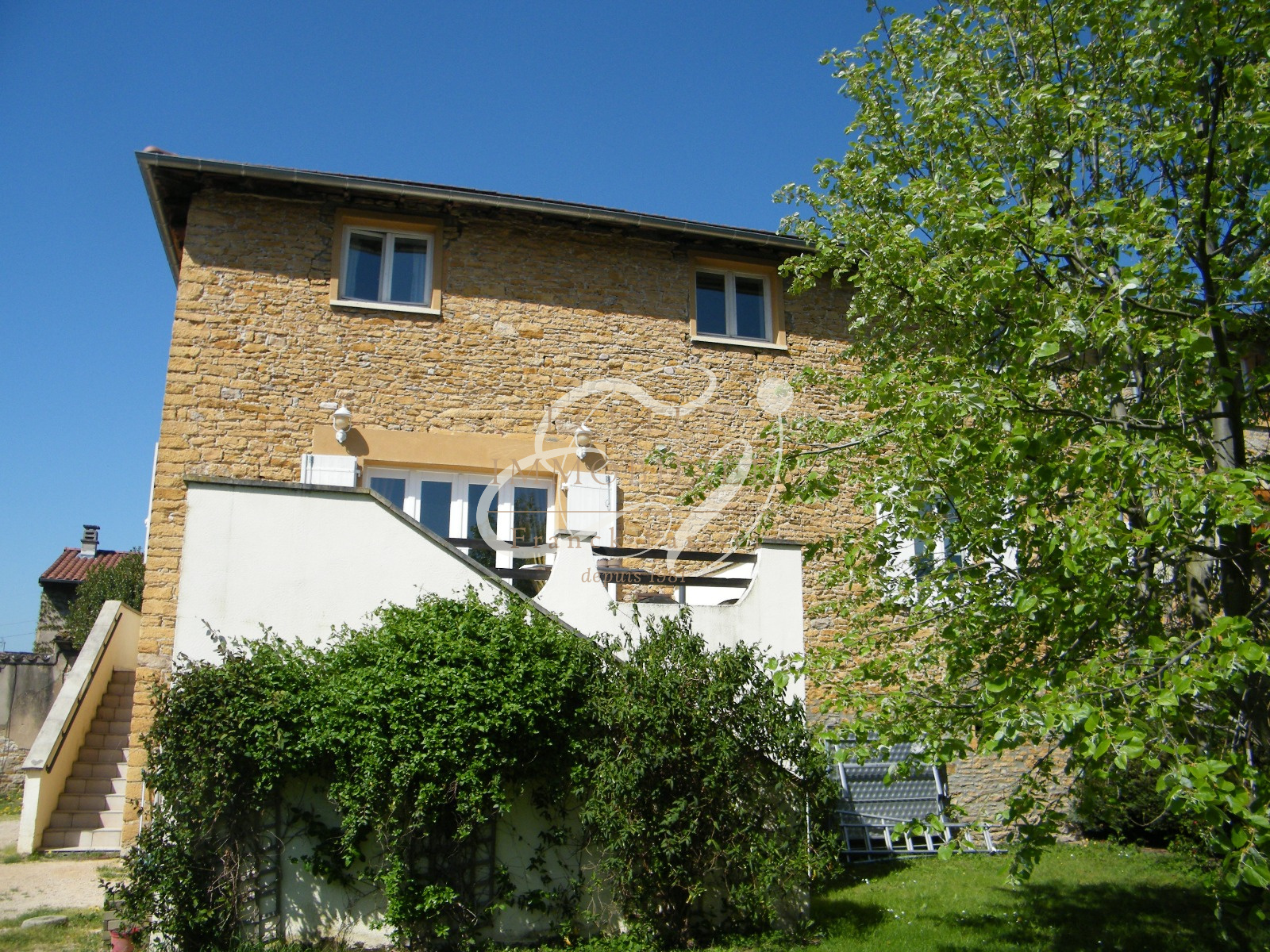 Civrieux-d'Azergues (69380)VENTE 69380 CIVRIEUX D'AZERGUES - Jolie maison en Pierres Dorées dans le centre du village, proche de toutes les commodités. Vous sérez séduit par le salon salle à manger avec sa cheminée suspendue et ses plafonds à la française donnant sur une terrasse plongeant sur le jardin et la campagne environnante. Une trés grande cuisine indépendante équipée dans le prolongement de la pièce de vie, et un cabinet de toilette avec wc indépendant. Au 1er étage, un salon dédié à la musique, aux jeux, à la lecture et ou à la télé. Puis 3 chambres dont une suite avec dressing, et salle de bains avec baignoire et douche italienne. Une salle d'eau indépendante, et un wc indépendant. Les dépendances sont composées entre autres d'une trés jolie cave voutée de 32 m², d'un garage, d'un pool house, d'un cabanon en bois, et de nombreux espaces de rangements. Un joli terrain arboré et paysager, avec sa piscine sécurisée et un puits complètent cette maison, qui allie charme, pierres dorées et bois. Une maison coup de coeur. Contactez Jean-Luc DUFRESNE au 06.13.67.70.65 - sous compromis