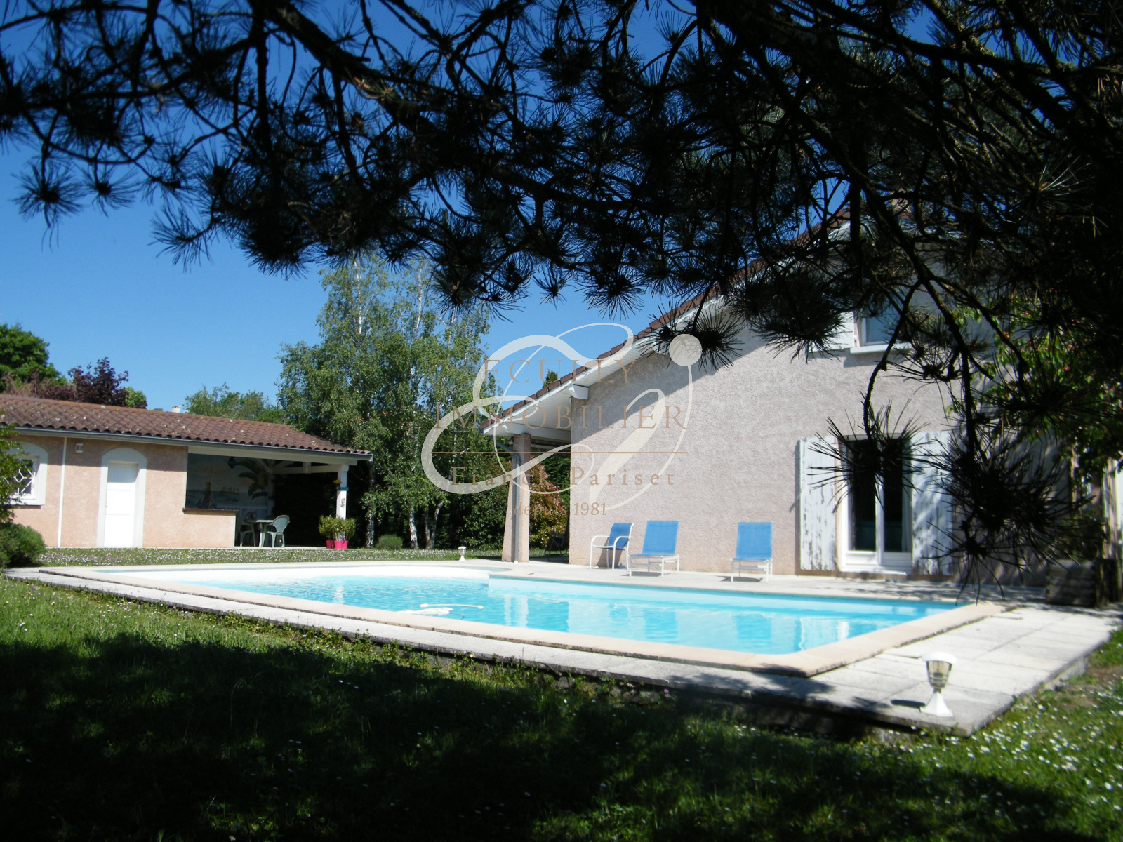 Dardilly (69570)Belle MAISON de 180 m² habitables sur un joli terrain au calme de 1400 m² avec piscine et pool house. Cette propriété est composée d'une maison principale de 153 m², et d'une dépendance de 28 m² composée d'une pièce principale avec sa salle d'eau. La maison propose de plain pied une pièce de vie salon salle à manger avec une cheminée insert + une grande mezzanine (salon télé-bibliothèque), une cuisine indépendante, une chambre, une salle de bains, une buanderie et un accés au garage double + grenier. Au 1er étage, la mezzanine, puis 3 chambres, et une grande salle d'eau, et un wc indépendant. Le terrain de 1400 m² est paysagé, au calme, une piscine, et un grand pool house composé d'une cuisine d'été avec son coin repas, d'un atelier, d'une salle d'eau avec wc, et d'un local technique piscine. Travaux de rafraichissements et de mise au gout du jour. Proche de toutes les commodités au centre du village.Contactez rapidement Jean-Luc DUFRESNE au 0613677065