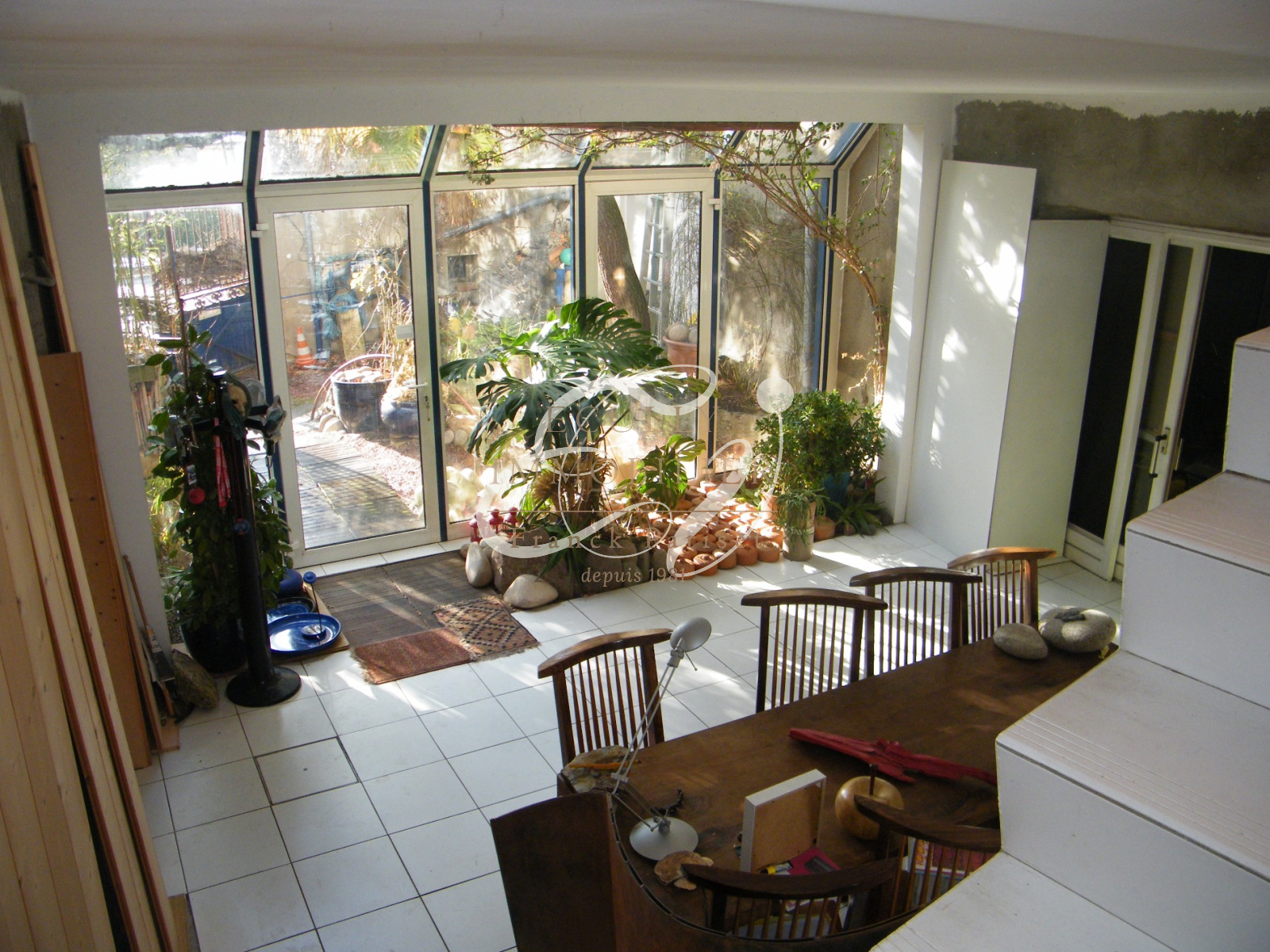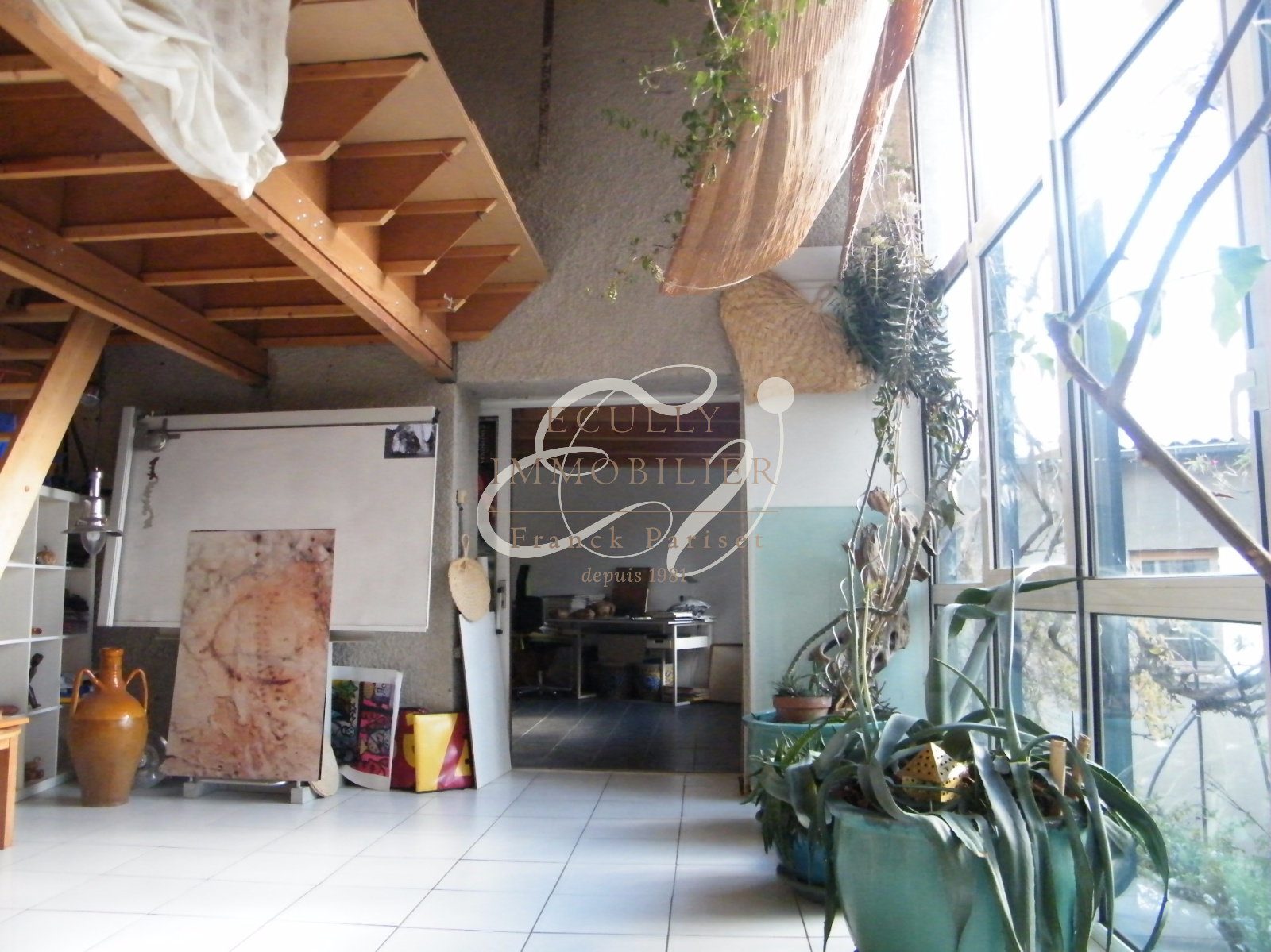 Dardilly (69570)Vente Dardilly 69570. Au coeur du village de Dardilly le bas, trés grand potentiel pour ce bien atypique et plein de charme. Magnifique lieu de vie qui vous attend, et qui reste à ré-inventer selon vos gouts et vos envies. La tranquillité, la vue, la lumière et la verdure font parties de cet habitat rare. Laissez votre imagination travailler. Trés grande verrière toute hauteur baignant cette maison de soleil. La maison principale se compose de 3 niveaux avec 2 mezzanines, 1 salon et 1 cuisine avec un foyer fermé donnant sur le patio, 1 salle d'eau avec wc, 3 à 5 chambres possibles . Le second batiment est composé d'un trés grand garage, et d'un plateau au 1er étage de 80 M2 (restant à aménager sur 1 ou 2 niveaux )avec une magnifique charpente bois à plus de 6 mètres.Un joli patio de 55 m2 paysager et arboré (un trés beau chamérops de plus de 8 mètres - un pin parasol, des bambous...) et un puits alimenté en eau. Commerces, Ecoles et transport à pieds. Contactez Jean-Luc DUFRESNE au 06 13 67 70 65